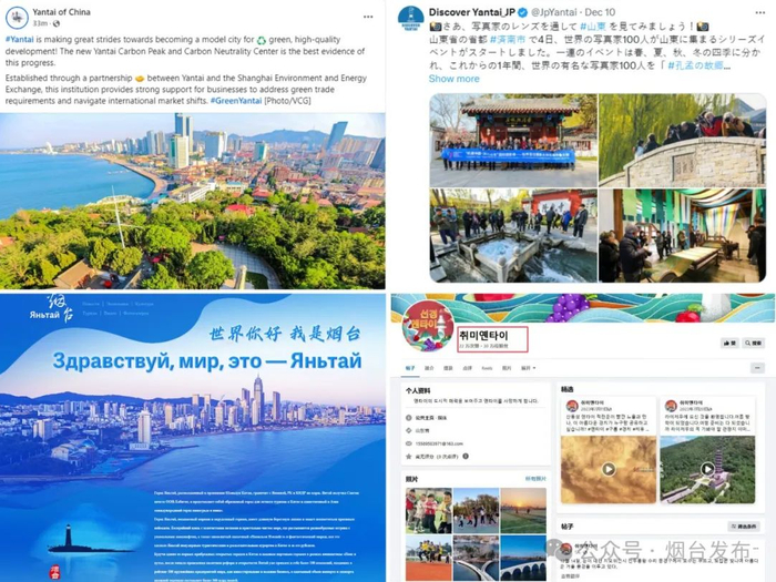统计显示,烟台“Yantai of China”英文脸书账号粉丝已超50万;账号“Discover Yantai”英日韩三语种X平台账号总浏览量已超过亿次;账号“世界你好 我是烟台”俄文韩文微网站全网总访问量已达5700万人次,其中海外IP访问量占比达81.3%。2024年以来,烟台更打造“中国烟台海媒账号集群”,每月策划一个主题,并进行线上联动传播,截至统计日,共发布网帖286篇次,总阅读量达1091万次。