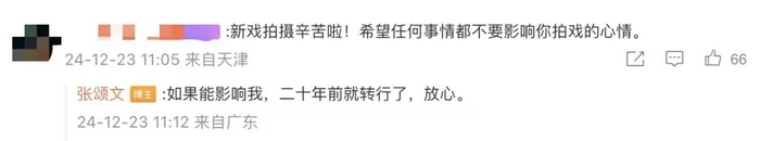 还有网友安慰张颂文希望不要被影响拍戏的心情,张颂文回复:“如果能影响到我,二十年前就转行了,放心。”