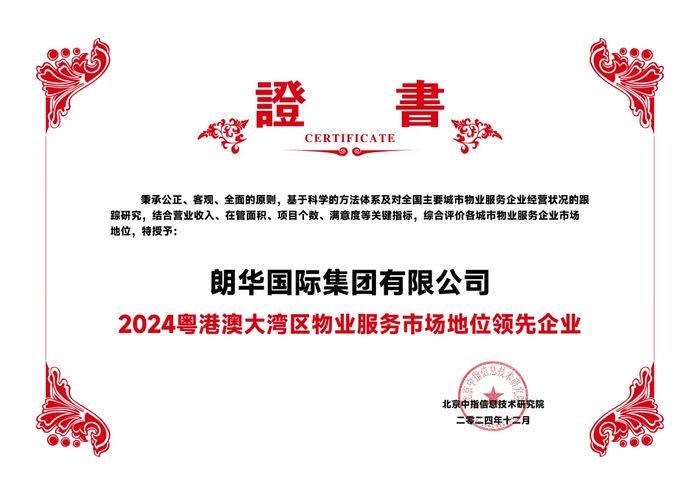 2024年12月19日,由北京中指信息技术研究院主办,中国房地产指数系统、中国物业服务指数系统承办的“2024中国房地产大数据年会暨2025中国房地产市场趋势报告会”在北京隆重召开。朗华国际集团有限公司(简称“朗华国际”),于2019年在香港联合交易所挂牌(8026.HK),其母公司为中国民营企业500强朗华集团,中国首家生产性服务平台,为制造业提供外贸、仓储、物流、金融、产业、检测、审计及设计等的一体化综合性服务平台。依托于母公司朗华集团在生产性服务业供应链上的优势,朗华国际近年来专注于业务转型与升级,在工业物管领域取得了显著成就。主营业务为工业产业园物业管理、工业物联网解决方案、以及园区企业工业跨境供应链管理和金融服务。现时平台集成了数字孪生(BIM5)物联网设备管理系统以及数字化园区智慧运营管理系统。朗华国际深耕在粤港澳大湾区,凭借强大的综合实力和服务水平,被评为“2024粤港澳大湾区物业服务市场地位领先企业”、 “2024中国物业服务优秀运营企业粤港澳大湾区工业产业园物业服务领先企业”。