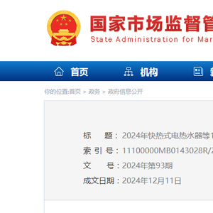 2024年快热式电热水器等13种网售产品质量国家监督抽查 不合格产品及生产销售单位名单