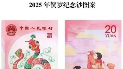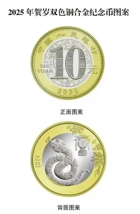 中国人民银行于2024年12月23日起预约发行2025年贺岁普通纪念币、纪念钞。2025年“蛇币”单枚面额10元,材质为双色铜合金,发行数量为1亿枚,2025年“蛇钞”单张面额20元,采用塑料材质,发行数量为1亿张,二者均采取面额等值兑换。