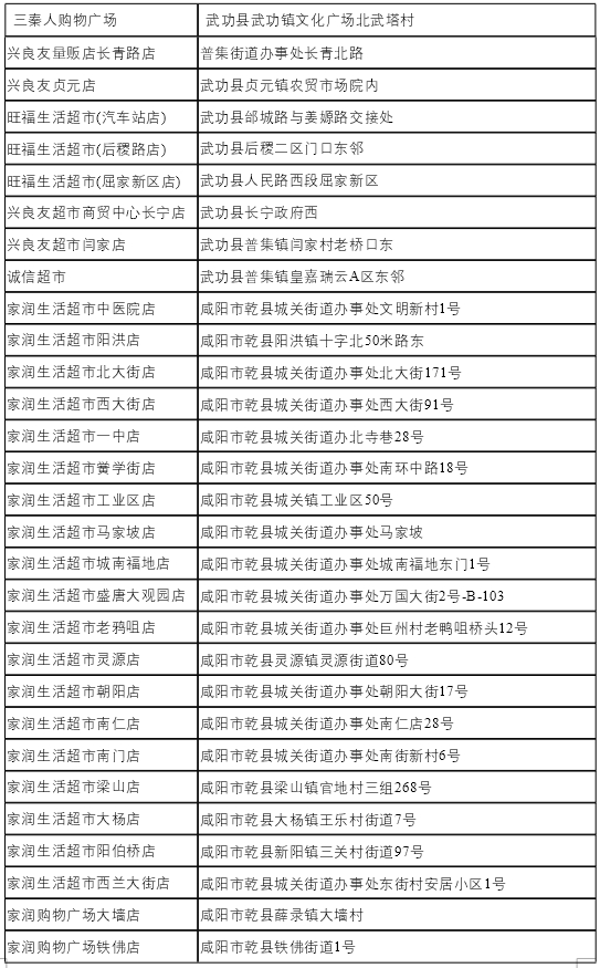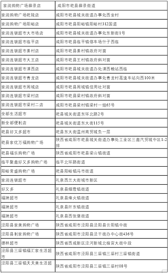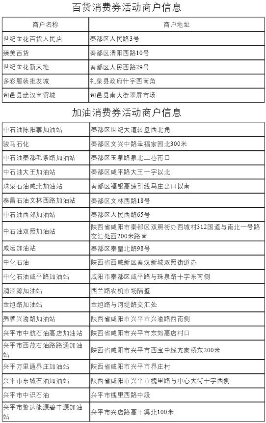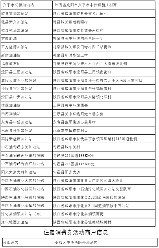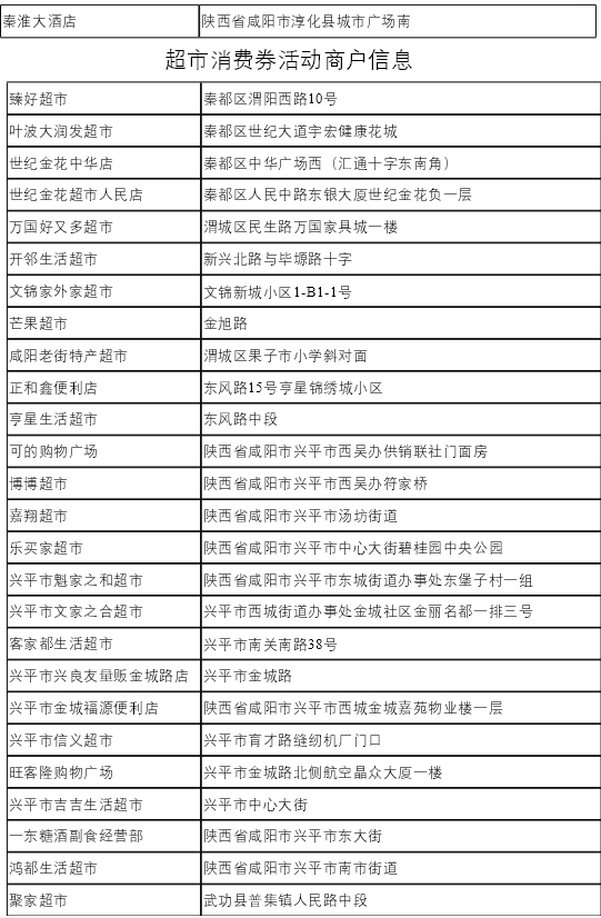 咸阳市政府消费券参与商户列表