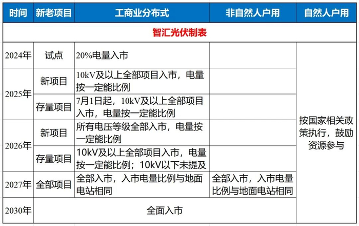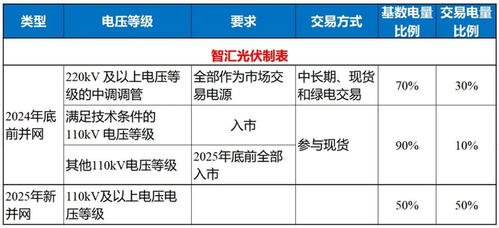 集中式光伏入市电量比例:60%;分布式光伏入市电量比例:20%