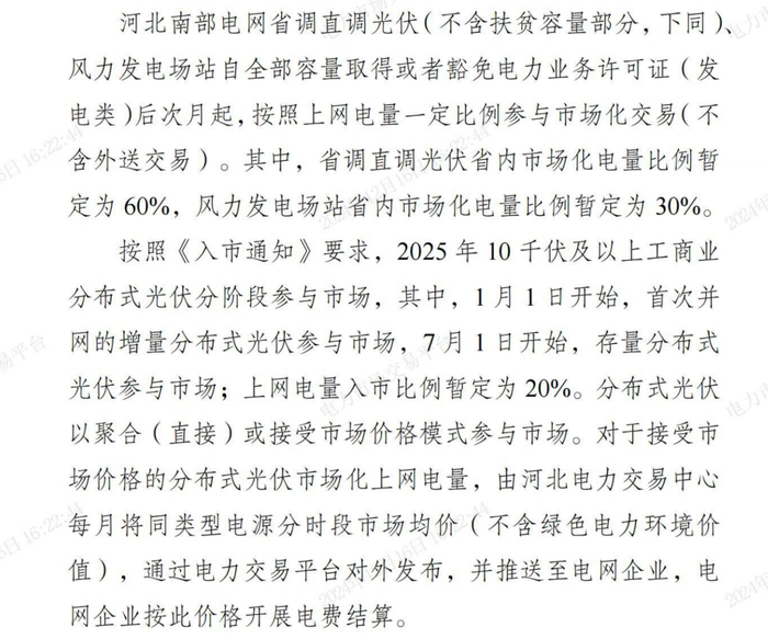 9、冀北电网:集中式新能源优先绿电交易,分布式20%入市