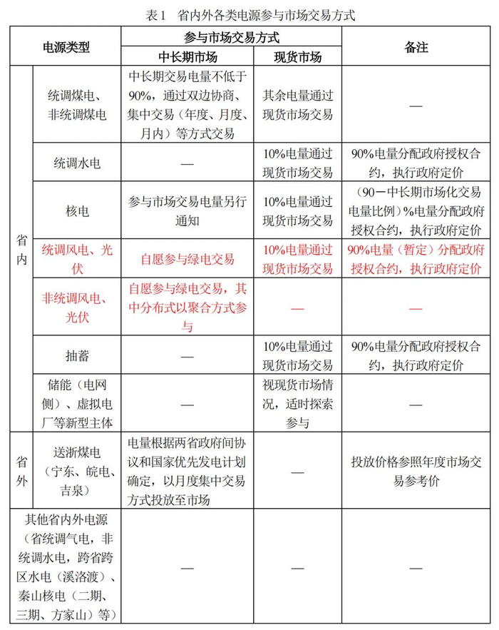 风电场、地面光伏电站:90%电量政府授权合约电价+10%现货交易