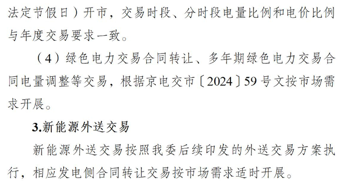 3)不参加绿电交易的集中式光伏、风电每月上网电量扣除保量保价部分为保量竞价电量,参与省内中长期常规交易。