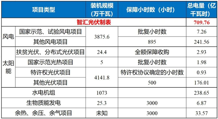 1)扶贫光伏、分布式光伏项目:实行全额保障收购;