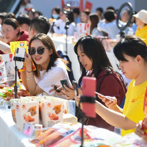 (长沙市黄兴广场,100多家辣条企业开展直播带货。湖南日报记者 辜鹏博 摄)