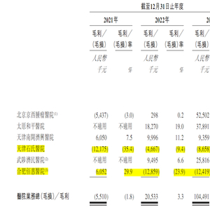 报告期,佰泽医疗除自己成立的公司天津石氏医院经营情况均处于毛损状态外,合肥佰惠医院的经营状况也比较差,2021年后一直未能实现正向毛利,其余收购而来的公司经营毛利均为正数。