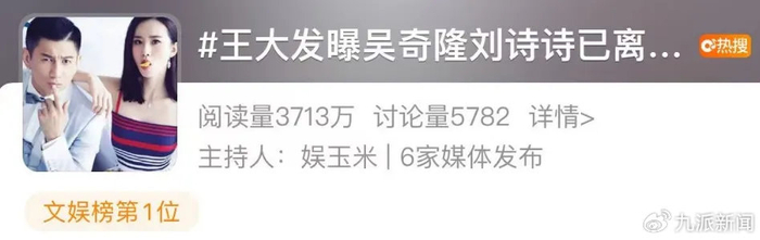 12月18日,吴奇隆、刘诗诗被曝已离婚的消息冲上热搜第一。