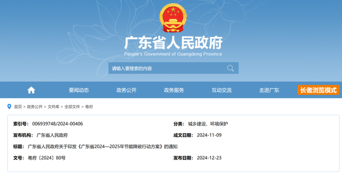 广东省2024—2025年节能降碳行动方案