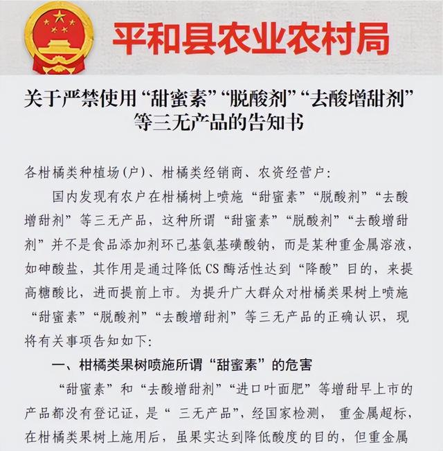 并说,现在种植的砂糖橘是打了一种农药叫脱酸剂,可以抑制柠檬酸的合成,还有催熟的作用,脱酸剂含有大量重金属,含有,砷等具有毒性的重金属。