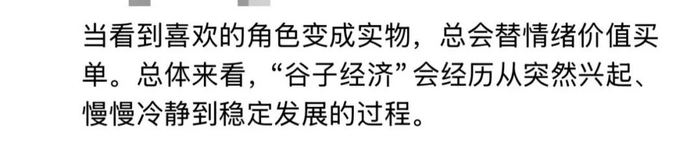 在马远方看来,“谷子经济”本质上是一种精神消费和情绪消费,“消费者能够比较低成本地获得精神满足,而在互联网时代,社群之间分享、交流自己的‘谷子’,还能满足社交属性。”此外,作为IP赋能的产品销售,“谷子经济”的利润空间大,业绩的爆发性也很强。