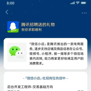 虽然没有商业计划,但微信小店的招聘是实打实的。