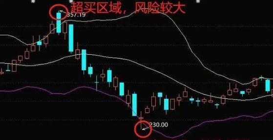 (3)布林线可以显示超买、超卖的位置,股价冲出上轨线为超买区域,应谨防回调,股价跌出下轨线则处于超卖区域,应关注反弹机会。