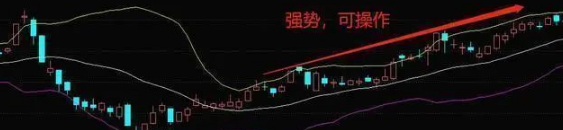 (2)布林线可以反映股票在一段时间内的走势强弱,通道的中轨线之上为可操作趋势,中轨线之下为不建议操作区域,强势股总在中、上轨线之间,弱势股总是在中轨和下轨之间。