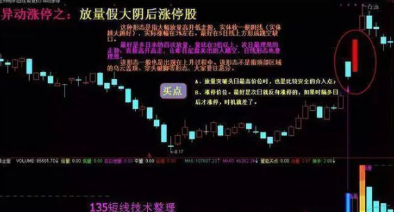 4、前提是假阴线最低价要高于前根大阳线最高价的1%以上。上下影针几乎等长,实体阴线不能太大。