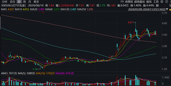 最近有小伙伴向力场君提起一只股票,实在不要太经典,这只A股就是*ST名家(300506.SZ)。