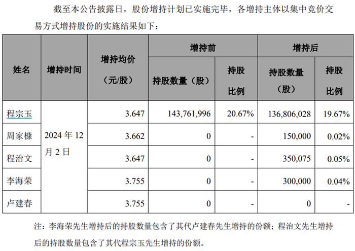 但与此同时,董事长程宗玉的持股变动就有意思了,从增持之前的14376.2万股,减少到了13680.6万股,不仅没有增加,相反还减少了将近700万股。一边高喊着增持,一边是董事长大举减持近700万股,这算不算是一次A股市场上独特的景观?