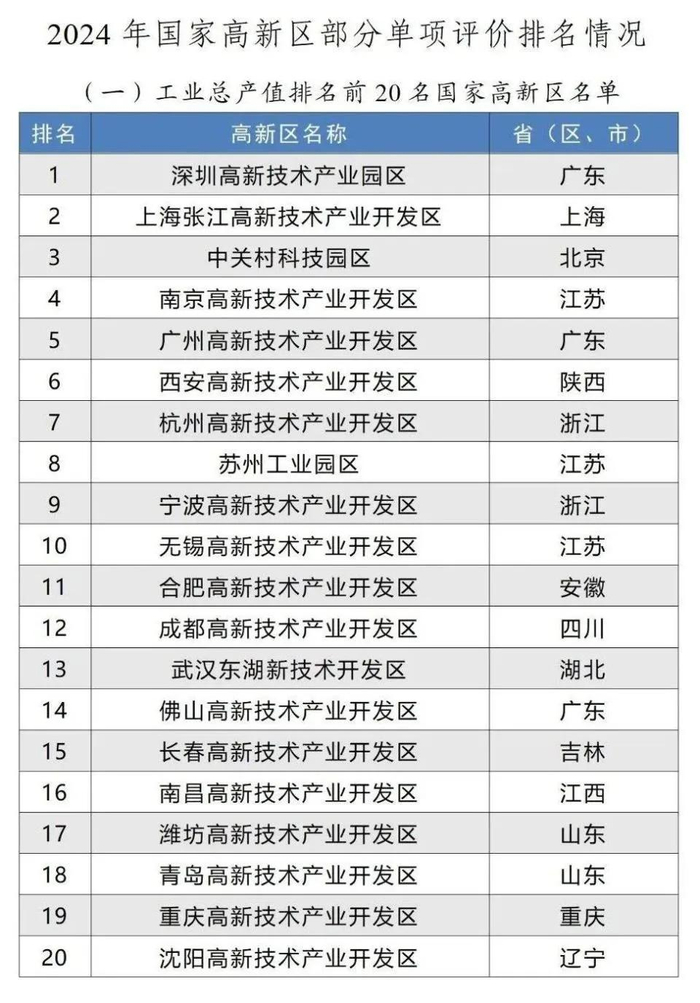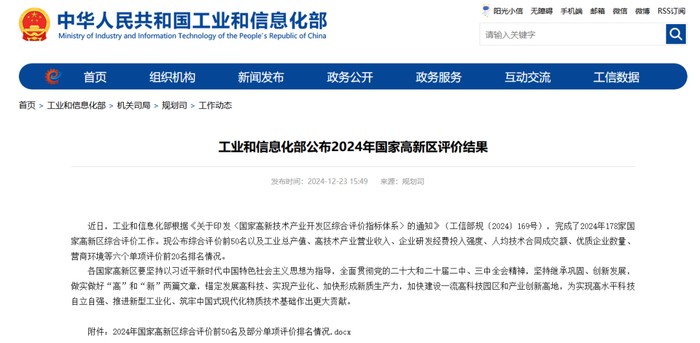 工信部公布2024年国家高新区评价结果!(附详细榜单)