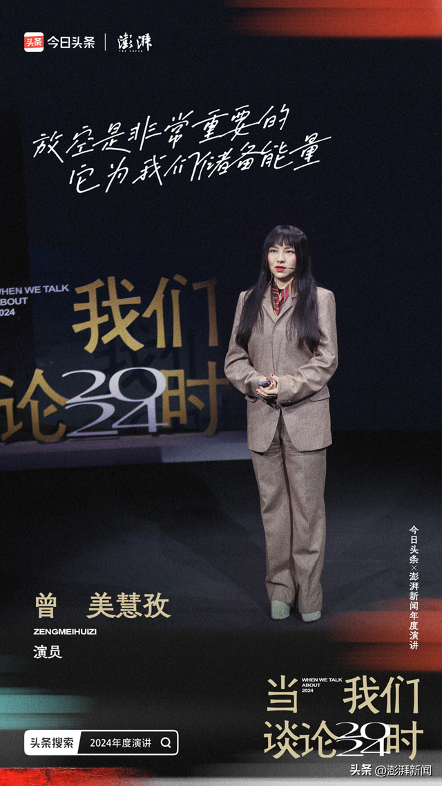 2024年12月16日晚,由今日头条、澎湃新闻联合主办的“当我们谈论2024时”年度演讲在东方艺术中心开启,演讲者张雨霏、曾美慧孜、梁永安、毛尖、王怡霖、陈年喜、方励、姚洋,与三百位观众一同进行一场精神的求索,寻找共同的经验和记忆,于不确定的时代,看见差异,也看见连接。