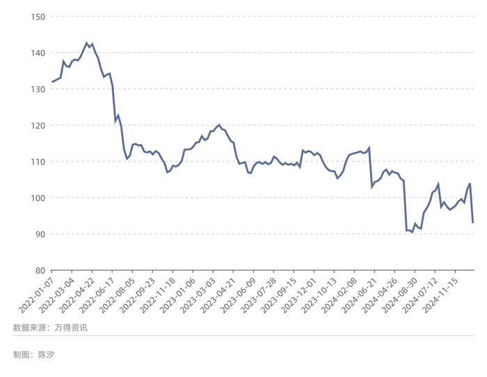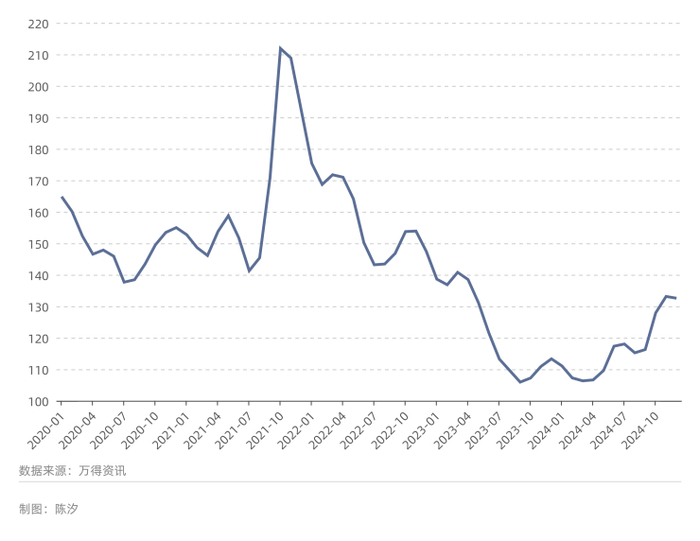 基准期样本公司总存货为2151亿元,当期总存货为1954亿元,下降了9.2%。从2024年10月开始,钢铁综合价格指数略有反弹。钢铁行业的未来盈利情况,一方面依赖中国经济复苏,另一方面依赖行业自身的产能去化和产能优化。