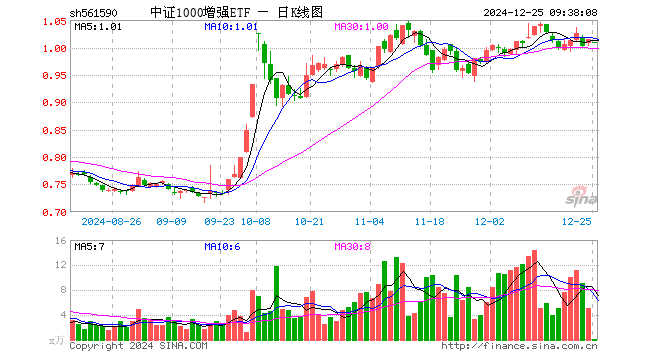 中证1000增强ETF(561590)业绩比较基准为中证1000指数收益率,管理人为华泰柏瑞基金管理有限公司,基金经理为笪篁、柳军,成立(2022-11-23)以来回报为1.50%,近一个月回报为5.72%。