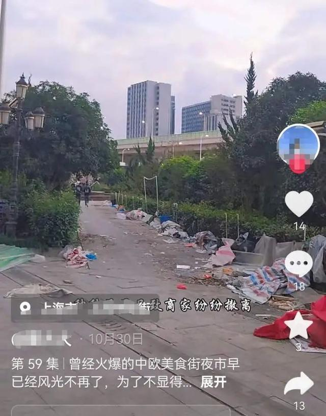 “5月中旬,突然又通知关停一个月,当时正是最佳逛夜市的天气,不少人没收到消息,仍然来打卡,到了之后发现一片漆黑,纷纷都说中欧街夜市关停了。”