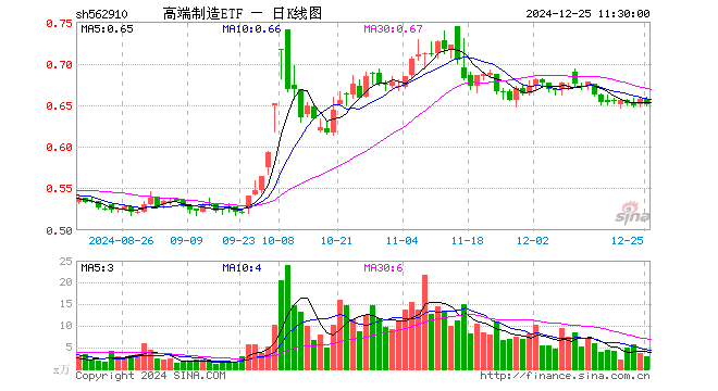 12月25日,截止午间收盘,高端制造ETF(562910)跌0.91%,报0.651元,成交额182.81万元。高端制造ETF(562910)重仓股方面,宁德时代截止午盘跌0.59%,阳光电源跌1.12%,汇川技术跌0.44%,三一重工跌0.37%,国电南瑞跌0.83%,隆基绿能跌0.31%,中国中车跌0.24%,中国船舶跌0.36%,潍柴动力涨1.31%,特变电工涨0.40%。
