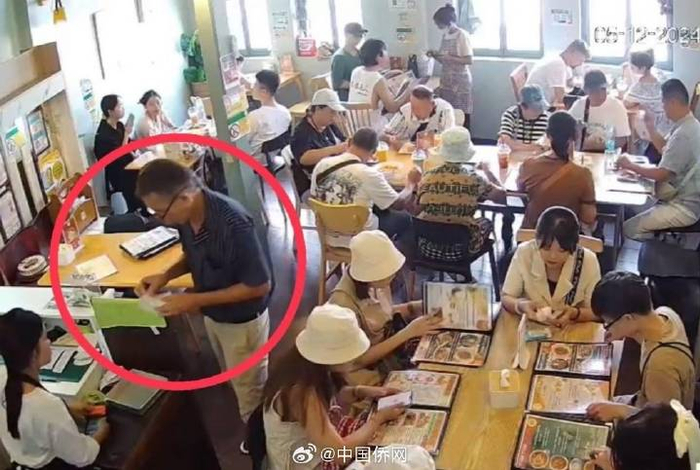 待中国游客点餐完毕后,该男子便上前收取了共2608泰铢,拿到钱后还假装与店员交谈才火速离去。