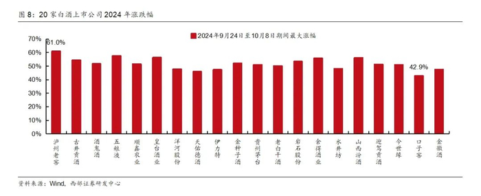 现在市场对明年消费刺激政策有期待。当这种预期偏向于乐观时,在白酒渠道库存没有减少,白酒上市公司收入和净利润增速没有提速的情况下,也可通过提升估值推动股价上涨。