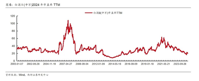 市场有出消费刺激政策的预期。从支出法核算角度分析,经济增长是投资、消费、净出口三种需求之和。最终消费支出、资本形成总额、货物和服务净出口是拉动经济增长的“三驾马车”。投资中占比较大的是房地产,房地产销售复苏偏弱。净出口增长存在一定的不确定性。消费,特别是居民消费未来在拉动经济增长过程中将要做出更大贡献。如果内需被提振起来,居民消费有起色,白酒销售也将受益。从历史数据看,当前白酒整个行业的PE处于低位水平,安全边际较高。