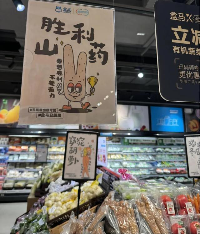 盒马门店里的丑可爱蔬菜展示区