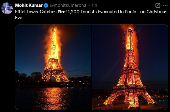近年来随着AI技术的迅猛发展,网络上经常出现关于埃菲尔铁塔的假新闻。