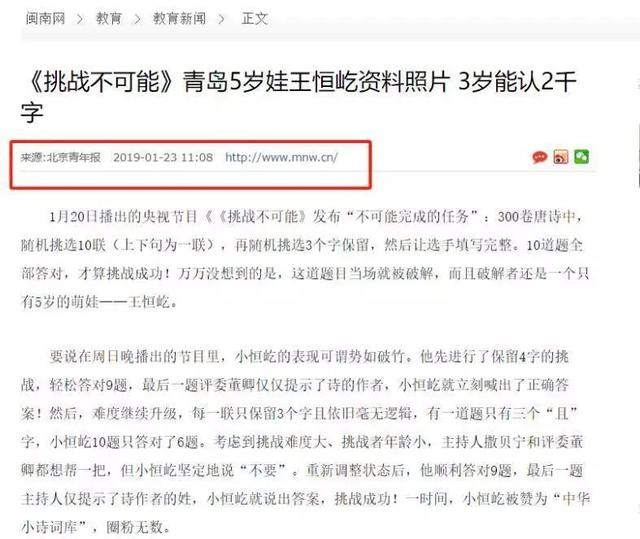 他不仅能精准识别两百多个国家的国旗和国徽,仿佛脑海中有一本无形的世界地图;背诵两百多首古诗词更是不在话下,那些或激昂、或婉约的诗句,从他稚嫩的口中流利诵出,如潺潺流水,润泽人心。更令人惊叹的是,当播放歌曲前奏时,他只需稍作聆听,便能迅速而准确地猜出歌曲名字,这敏锐的音乐感知力,让在场所有人都不禁为之侧目。节目一经播出,犹如一颗石子投入平静的湖面,激起千层浪,王恒屹瞬间吸引了无数观众的目光,收获了大批粉丝,成为了家喻户晓的 “天才萌娃”。