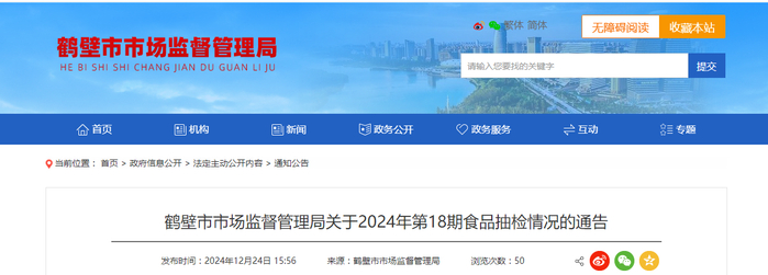 河南省鹤壁市市场监督管理局关于2024年第18期食品抽检情况的通告