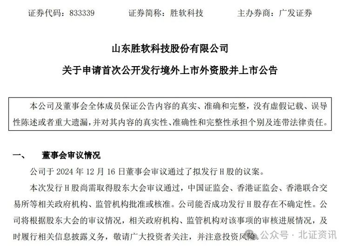 在终止北交所IPO审核之后不足一个月,胜软科技于12月16日公告其董事会审议通过了拟发行H股的议案。公告称,将根据股东大会的审议情况,相关政府机构、监管机构对该事项的审核进展情况,及时履行相关信息披露义务。