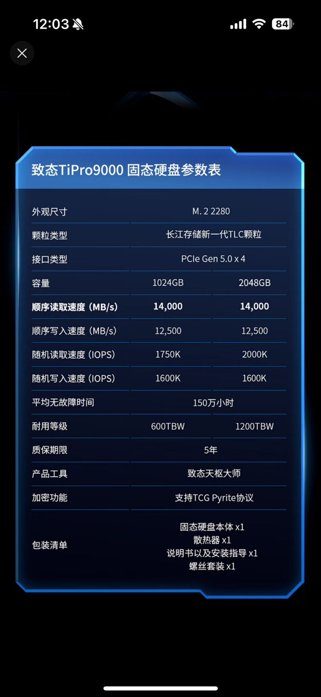 12月24日,致态正式推出了旗下首款PCIe 5.0旗舰存储产品——TiPro9000固态硬盘。