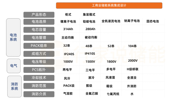 当前,从设备选型、电池选择、电池成组方案、PCS拓扑、集成方案、冷却技术、消防范围等方面,工商业储能系统集成设计硬件组合趋于同质化。