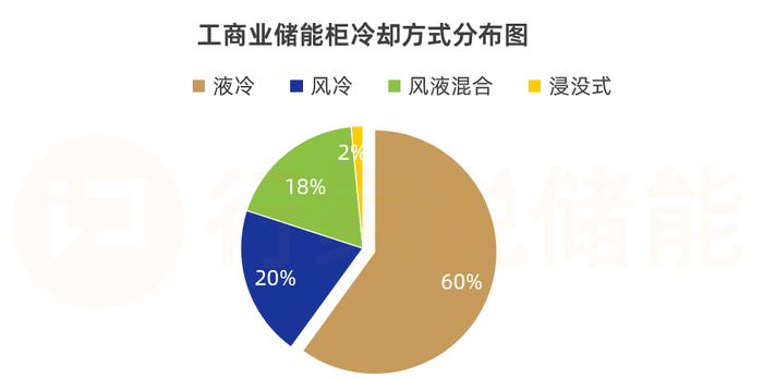 从冷却方式来看,这些样本中,工商业储能柜液冷方案比较普遍,约占6成,强制风冷占20%,液冷+风冷组合约占18%。浸没式占比小,技术有难度,但已经有些企业在2024年先后推出浸没式工商业储能系统。