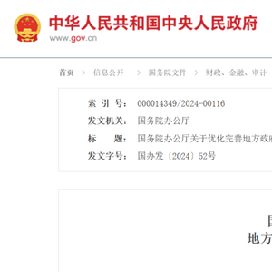 刚刚,国务院办公厅发布《国务院办公厅关于优化完善地方政府专项债券管理机制的意见》(国办发〔2024〕52号)。