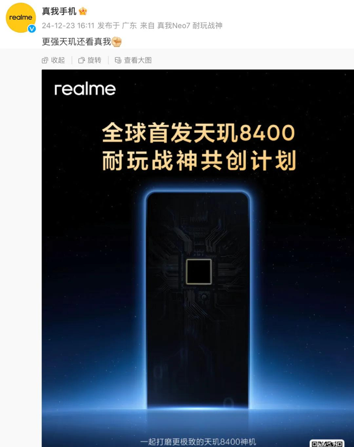 至于天玑8400的新机,真我预热将全球首发,但具体型号暂未公布。