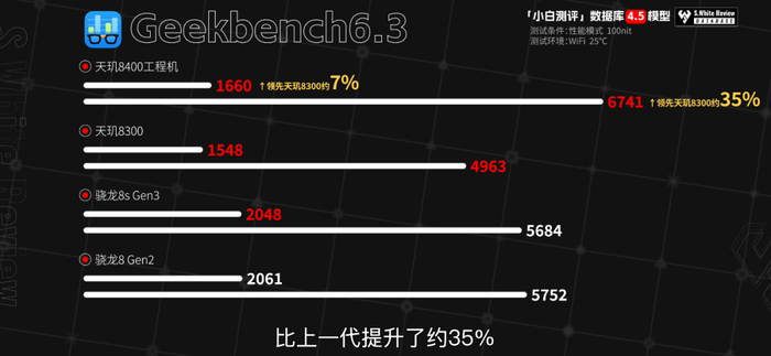 CPU性能表现上,天玑8400工程机Geekbench6 单核1660分,多核6741分。