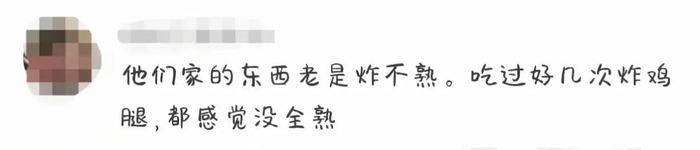 对此,有网友评论,“一看就是冷冻肉没解冻就炸了。”也有网友称,吃过好几次塔斯汀的炸鸡腿,都感觉没全熟。