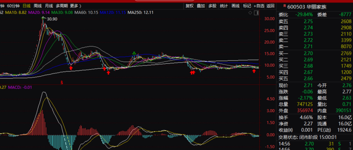 然而,随着市场走弱和徐翔东窗事发,华丽家族也风光不再。2015年6月到7月初,该公司股价跌去三分之二;是年11月,徐翔因操纵证券市场被带走,华丽家族股价再度杀跌,从此进入下行通道。截至目前,该公司股价已经从最高位的30.9元跌至2.71元。