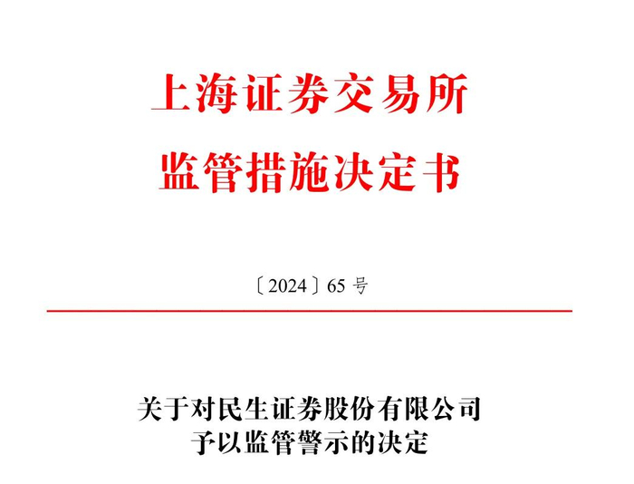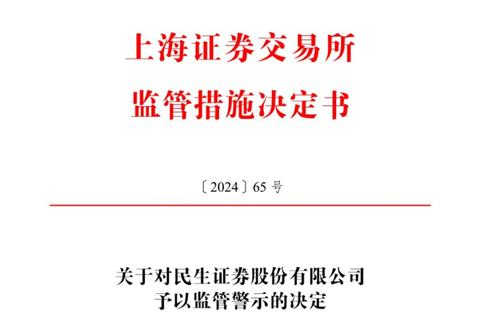 对民生证券股份有限公司予以监管警示。