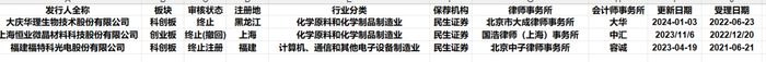 大庆华理生物技术股份有限公司拟在科创板上市,其审核状态为终止,注册地在黑龙江,属于化学原料和化学制品制造业,保荐机构为民生证券,律师事务所是北京市大成律师事务所,会计师事务所为大华,更新日期为 2024 年 1 月 3 日,受理日期为 2022 年 6 月 23 日;