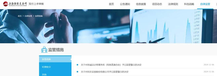12 月 6 日,上交所也曾对民生证券予以监管警示,对保荐代表人苏永法、崔勇予以通报批评。