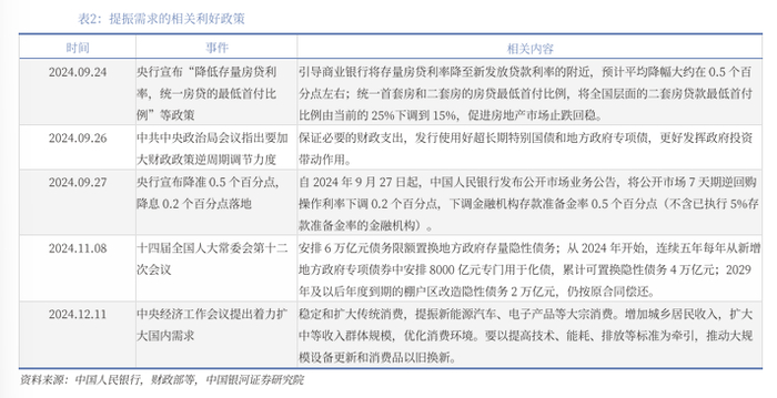 地方化债政策叠加,缓解地方偿债压力。2024年11月8日,十四届全国人大常委会第十二次会议还公布了12万亿元地方化债“组合拳”:批准增加6万亿元债务限额置换地方政府存量隐性债务;从2024年开始,连续五年每年从新增地方政府专项债券中安排8000亿元补充政府性基金财力,专门用于化债,累计可置换隐性债务4万亿元;2029年及以后年度到期的棚户区改造隐性债务2万亿元,仍按原合同偿还。三项政策协同发力能直接缓解地方政府的偿债压力,推动经济持续回升向好。