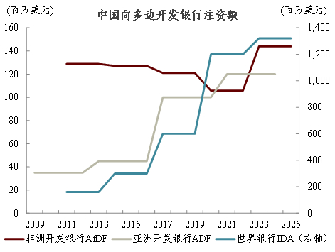 注:IDA和AfDF注资周期为三年,ADF为四年;图表显示的数据为该周期内中国注资总额